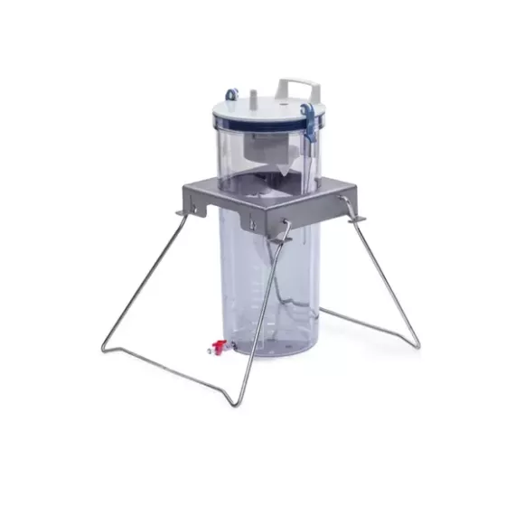 These autoclavable containers are combined with suction machines to create a closed system for collecting, measuring, decanting and transferring adipose tissue in a single pass. The collected tissue is subjected to natural decantation by gravity, while the residual liquids are eliminated separately.
