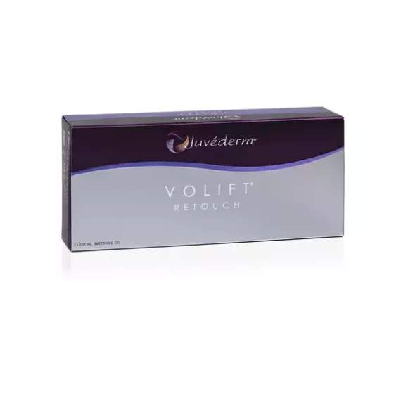 Juvederm Volift Retouch is an injectable hyaluronic acid-based facial dermal filler designed for filling, smoothing, and revitalizing the midface. Juvederm Volift Retouch is ideal to reduce nasolabial folds and restoring the natural contours of the face. The filler contains lidocaine for a more comfortable treatment for the patient during the injection. Also, the 0.55ml size syringes are ideal for touch-up treatments in areas that require a smaller amount of gel to achieve the desired results.