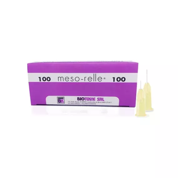 Meso-relle® needles are disposable hypodermic needles, specific for use in mesotherapy and aesthetic medicine, painless multiple sharpening is ideal for optimizing penetration. Thin-walled steel ensures the highest flow parameters while remaining durable. The unique Meso Relle needle sharpening technology increases the comfort of treatments.