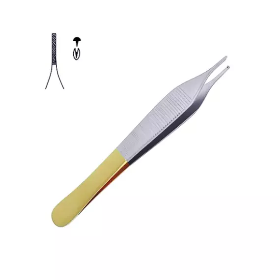 Adson Dissecting Forceps with Tungsten Carbide inserts are characterized by the gold plating on the end part and are 30 times longer service life compared to classic steel.