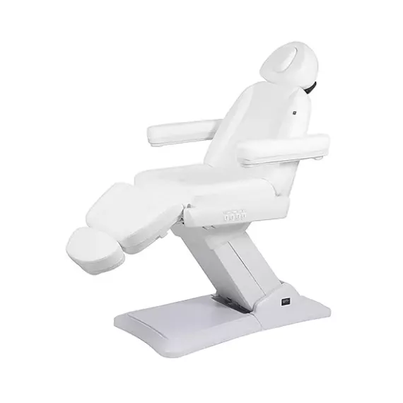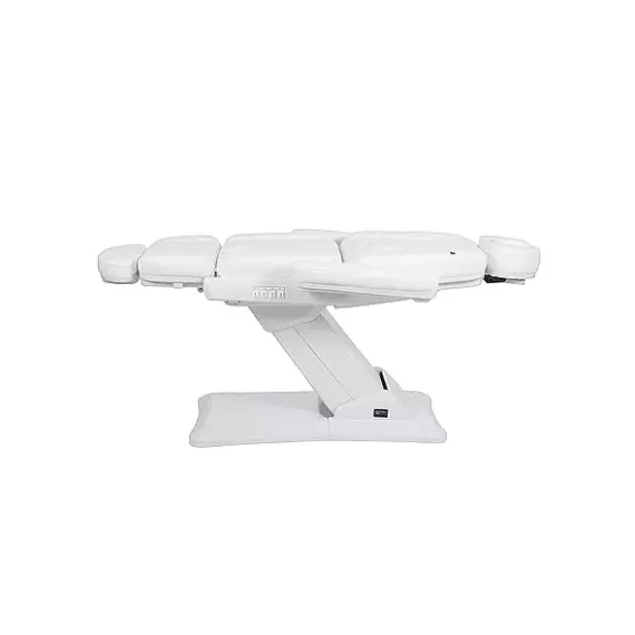 This chair offers the ultimate in luxury, equipped with 4 motors that control height, backrest and seat inclination as well as adjustable footrest by gas lift and reclining armrests. An easy-to-use button panel is conveniently located in its backrest, largest and seat so that all functions can be controlled from any point. Additionally, this version includes a RESET function that returns the chair to its original position. To top it off, the white PU upholstery of high quality ensures an effortless clean for years of enjoyment.